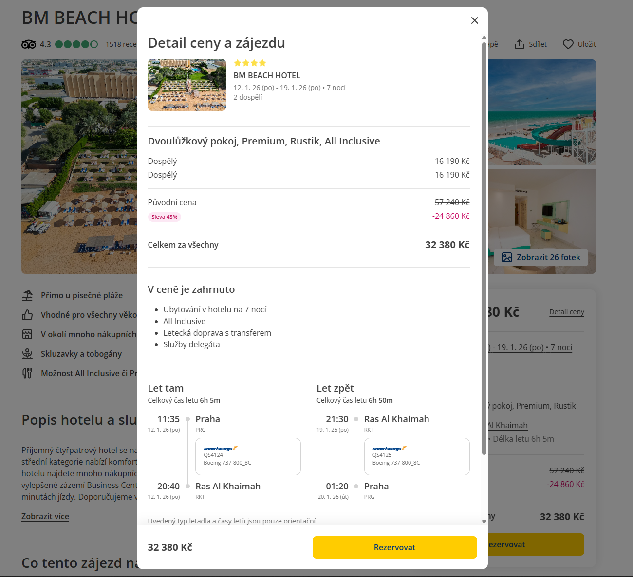 Vydejte se v lednu do Emirátů za teplem. Dobře hodnocený 4-hvězdičkový hotel s vlastní pláží se nachází poblíž města Ras Al Khaimah. Zájezd na 8 dní (7 nocí) s odletem z Prahy pořídíte za 16 190 Kč. V ceně je all inclusive. Zájezd je v termínu od 12. - 19.1. Zájezd