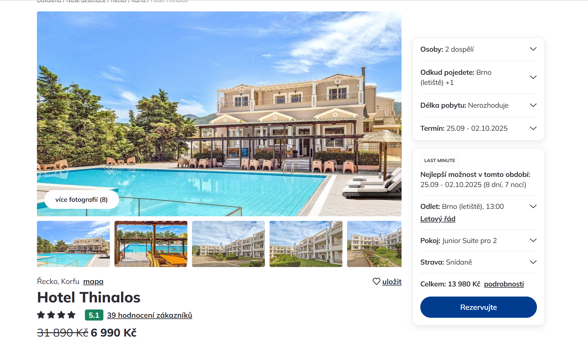 Vydejte se zítra po obědě na dovolenou na Korfu. Zájezd do velmi dobře hodnoceného 4-hvězdičkového hotelu a odletem z Brna pořídíte na 8 dní (7 nocí) za 6 990 Kč. Zájezd je v termínu od 25.9. - 2.10.2025. V ceně je letenka + ubytování + snídaně. Zájezd