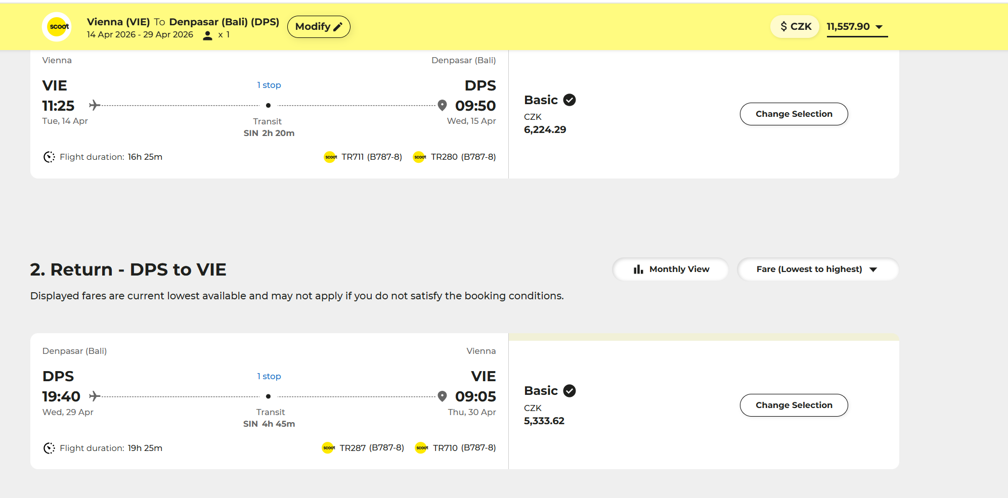 Naplánuje si dovolenou na Bali díky lowcostové lince z Vídně. Zpáteční letenky z Vídně do Denpasaru pořídíte během dubna a května příštího roku od 11 558 Kč. Poletíte s nízkonákladovkou Scoot s přestupem v Singapuru. V ceně je pouze příruční zavazadlo do 10 kg. Termíny za tuto cenu jsou omezené. Letenky