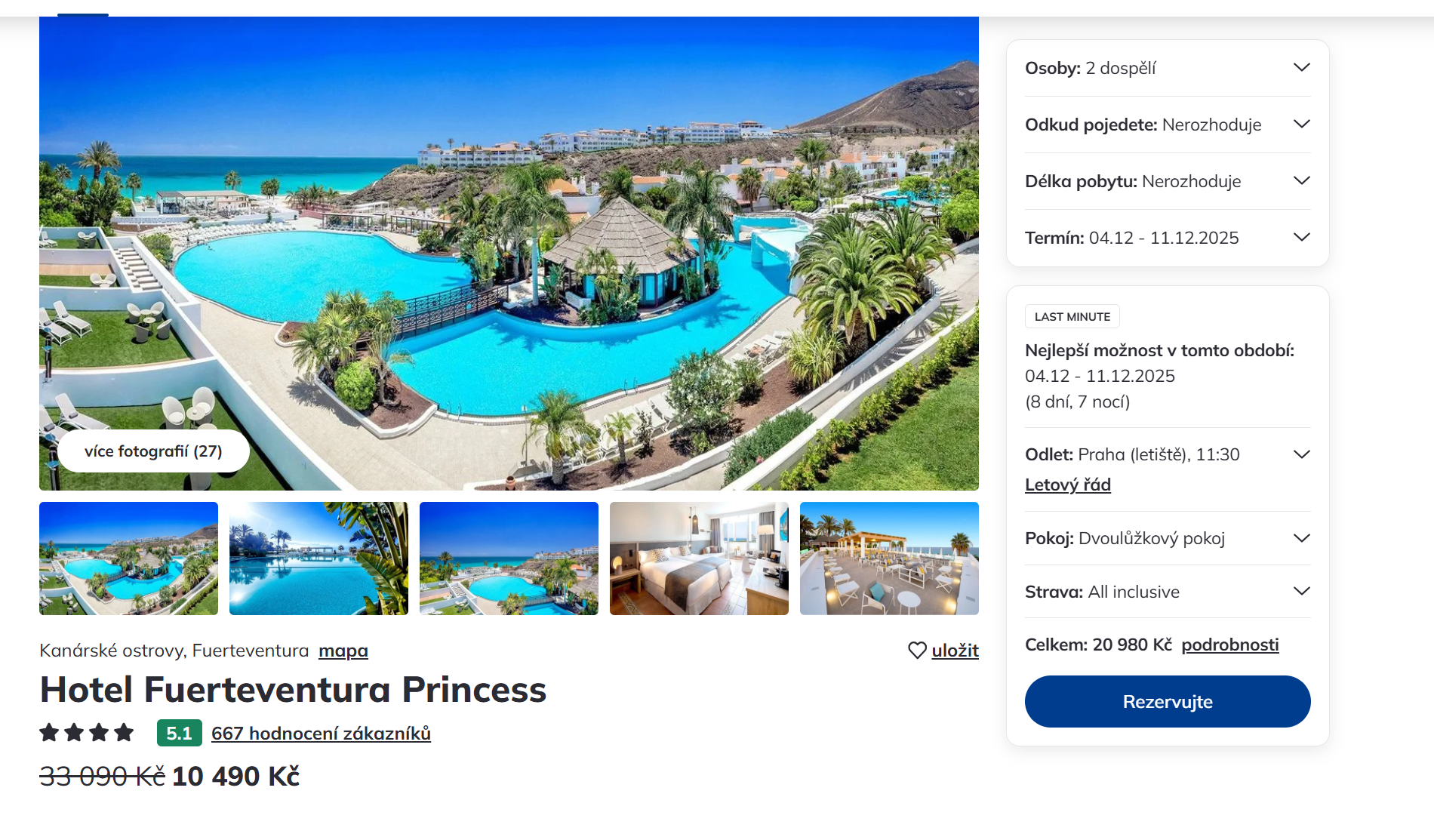 Vydejte se zítra dopoledne na dovolenou na Fuerteventuru. Zájezd do výborně hodnoceného 4-hvězdičkového resortu a odletem z Prahy pořídíte od 10 490 Kč s all inclusive. Zájezd je v termínu od 4. - 11.12.2025. Zájezd