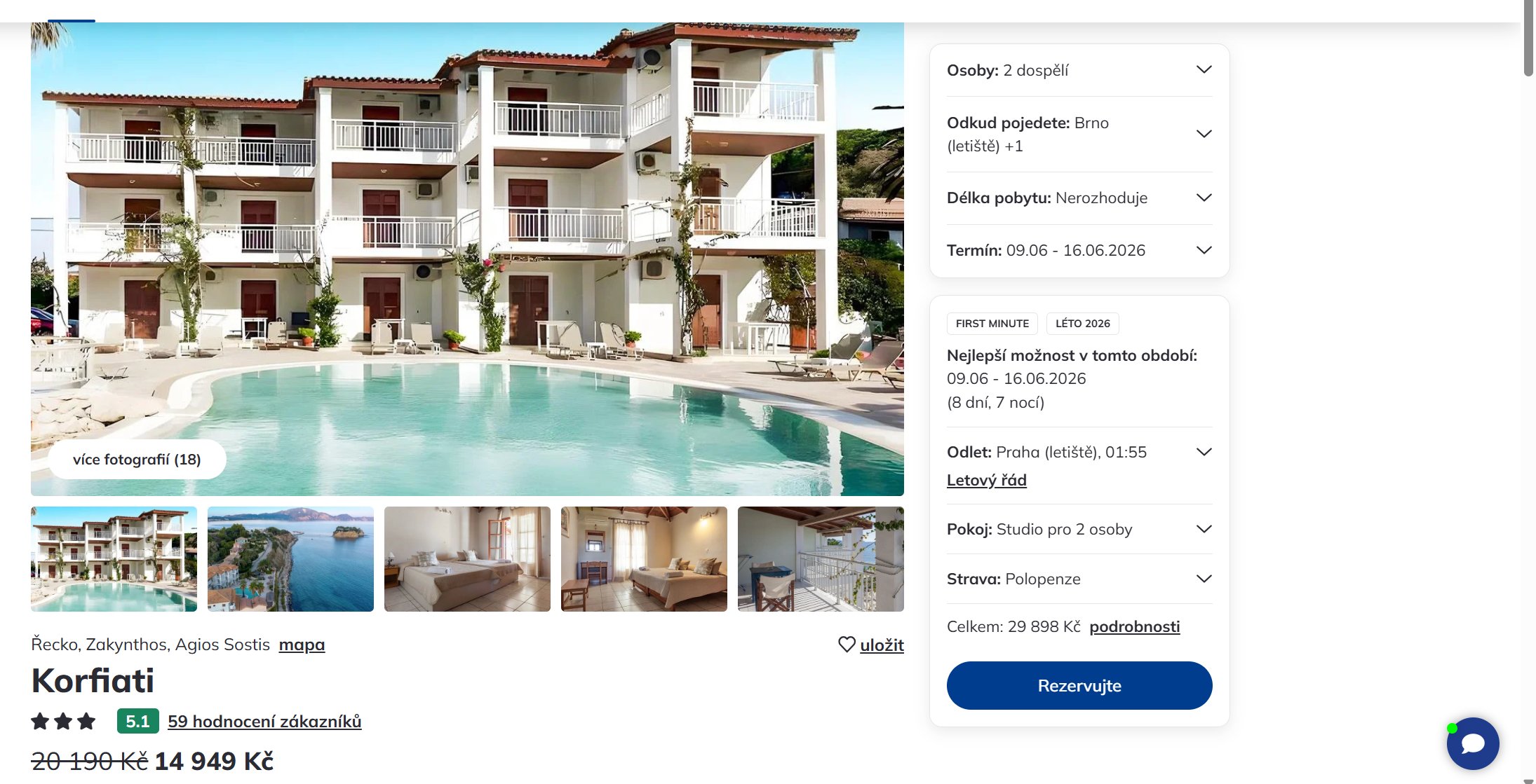 Vydejte se v červnu na ostrov Zakynthos. Zájezd do dobře hodnoceného 3-hvězdičkového hotelu a odletem z Brna pořídíte s polopenzí na 8 dní (7 nocí) za 14 949 Kč. Zájezd je v termínu od 9. - 16.6.2026. Zájezd