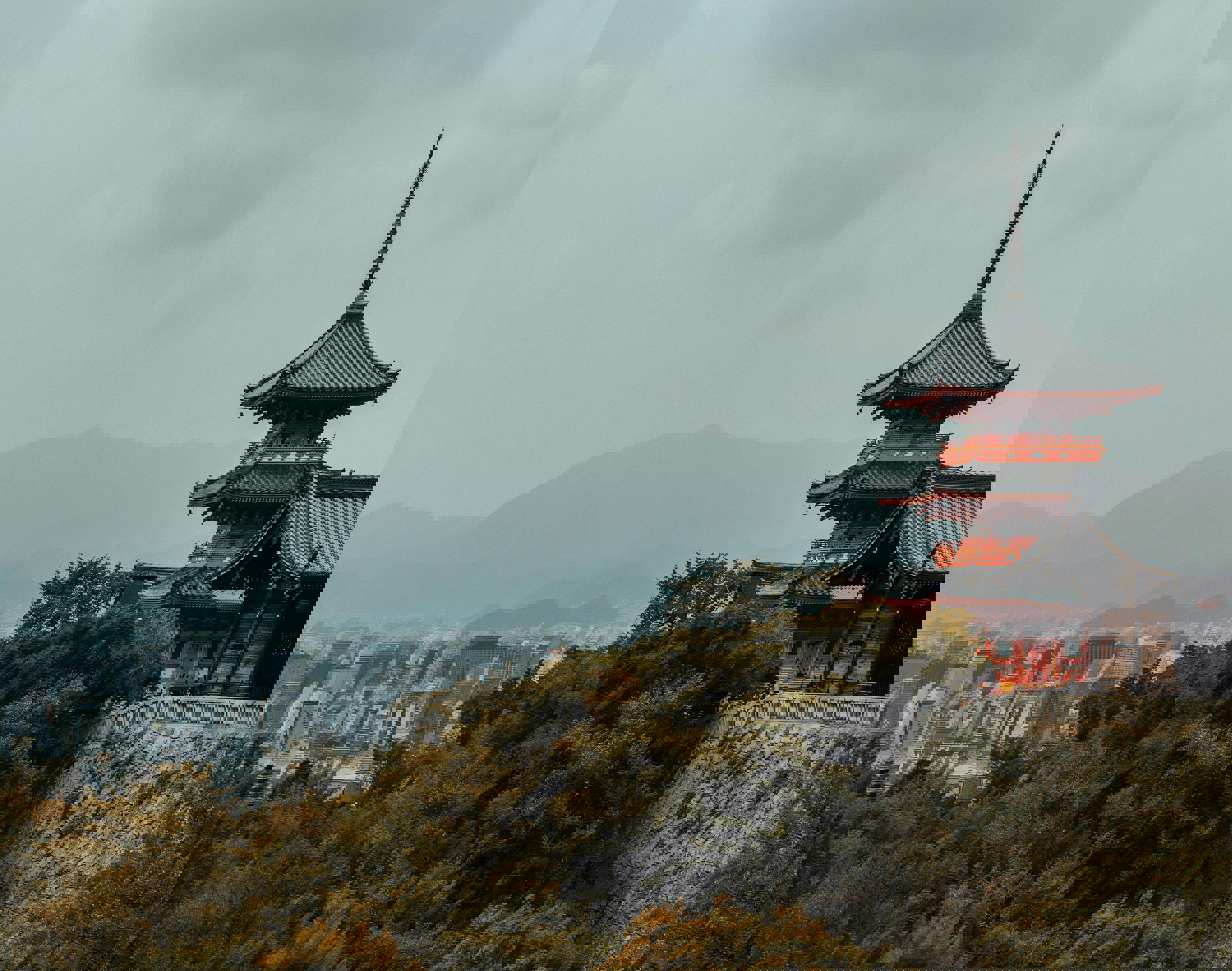 Chrám Kiyomizu-dera je známý svou dřevěnou terasou, která se tyčí nad svahy a nabízí panoramatický výhled na město. Stavba z roku 780 stojí bez použití jediného hřebíku. Na jaře se zde rozkvétají sakury, zatímco na podzim hraje okolní les všemi barvami. Nedaleko chrámu se nachází ulice plné tradičních suvenýrů a sladkostí, ideální k procházce po návštěvě.